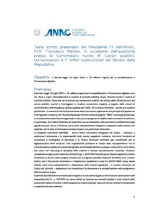 Anac Su Decreto Semplificazioni Intervento Merloni Commissioni Senato-31-07-20